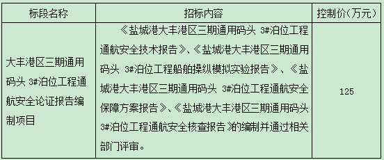 4、招標(biāo)內(nèi)容:大豐港區(qū)三期通用碼頭3#泊位工程通航安全論證報(bào)告編制,具體內(nèi)容詳見招標(biāo)需求。