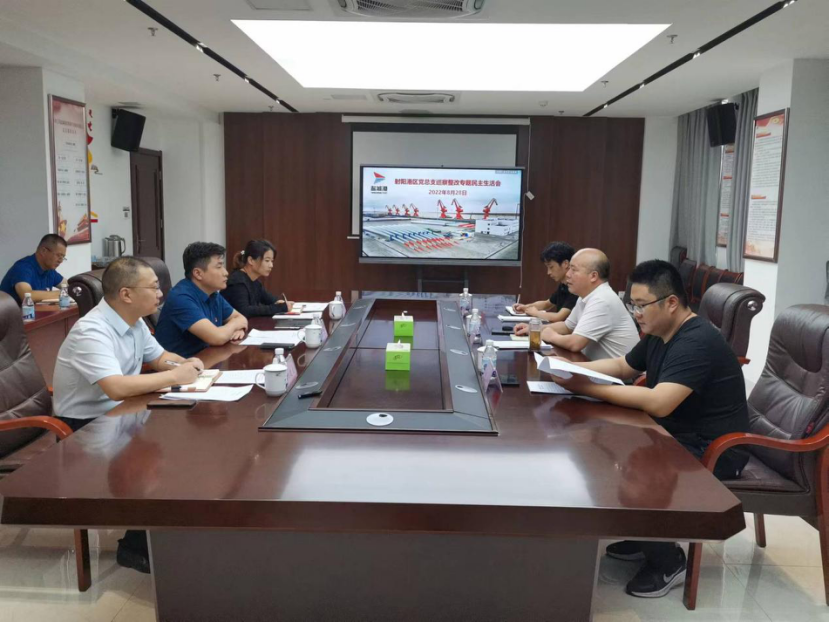 8月28日下午,集團黨委委員、董事、副總經理丁安廣前往射陽港區召開領導班子巡察整改專題民主生活會,射陽港區領導班子成員及相關負責同志參加。