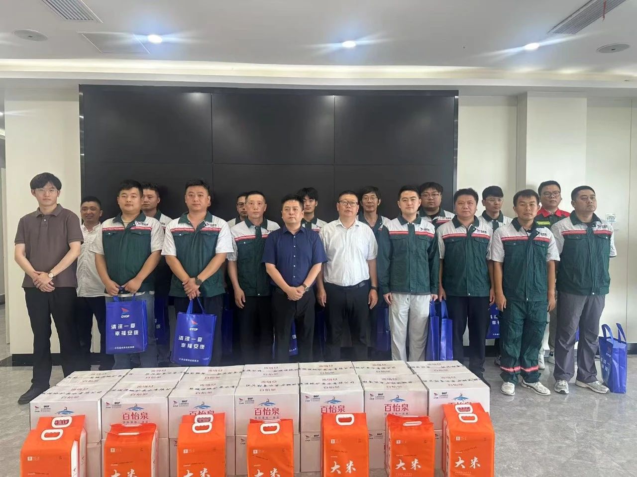 近日,受集團黨委、董事會委托,集團總經理袁欣率隊前往大豐港區邊檢站和通用碼頭,為堅守在高溫下的職工送去關懷與清涼,切實保障高溫環境下一線職工的勞動安全與身體健康。