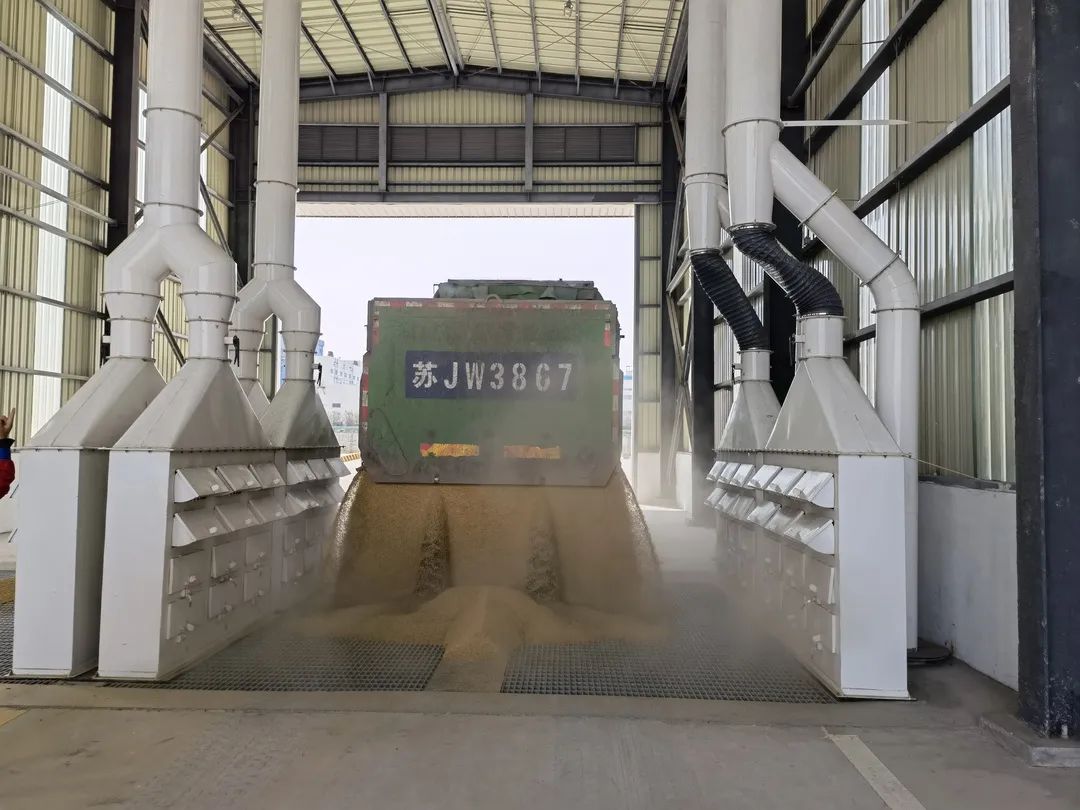 鹽城港港口公司糧儲公司投效使用的機械化平方倉在作業(yè)模式上進行大力改革,創(chuàng)新性使用雙梨式單托輥帶式輸送機,利用其高度集中化、自動化的功能優(yōu)勢,實現(xiàn)糧食遠距離、不間斷、大批量輸送進倉,進一步提高了糧食進倉速度和卸糧質(zhì)效,同時輸送線全程采用高效脈動除塵裝置及抑塵料斗,為節(jié)能增效、除塵環(huán)保提供有力保障,有效實現(xiàn)了綠色倉儲升級轉(zhuǎn)型。