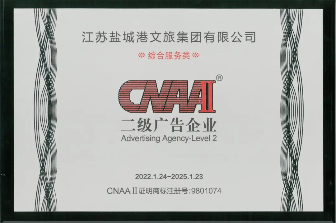 在鹽城港集團上下喜迎集團成立兩周年之際,6月13日,文旅集團從中國廣告協會收到一份沉甸甸的賀禮——編號9801074“CNAAII”綜合服務類二級廣告企業資質牌匾。這是目前鹽城地區唯一一家通過綜合服務類二級廣告企業資質等級認定企業,標志著鹽城港文旅集團資質創建取得了新的突破,為鹽城港集團成立兩周年交出了一份亮眼的生日賀禮。