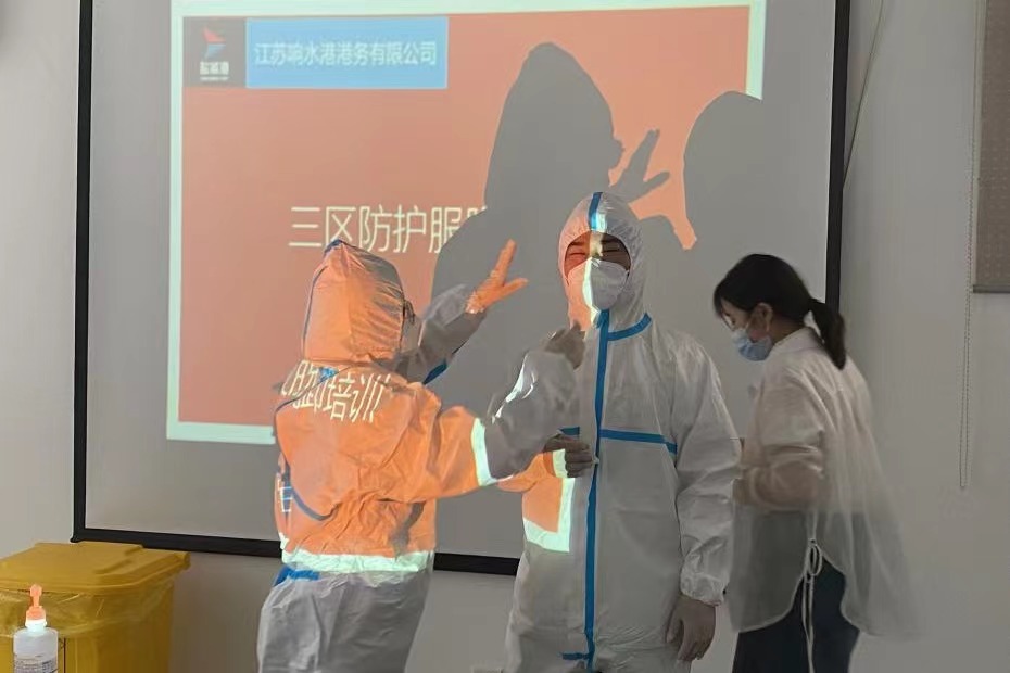 為堅(jiān)決打好新型冠狀病毒疫情防控阻擊戰(zhàn),全面提高應(yīng)對(duì)疫情的響應(yīng)能力,熟悉應(yīng)急處置具體流程,從嚴(yán)抓好疫情防控工作,近日,響水港區(qū)港務(wù)公司特邀響水縣港城醫(yī)院專職醫(yī)護(hù)人員,對(duì)港區(qū)作業(yè)人員進(jìn)行疫情防控相關(guān)的三區(qū)防護(hù)服穿脫消殺培訓(xùn)。