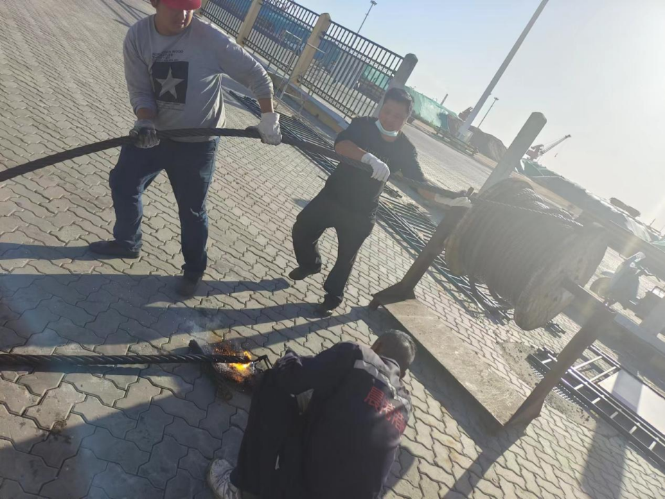 今年以來,響水港區的各類作業量再攀新高,技術維修組壓力與日俱增,但壓力也是動力,如何提升維修效能成了關鍵。技術組化被動為主動,改變以往只注重搶修,不關注故障原因的簡易工作思維,積極思考各類故障尤其是同類故障重復產生的原因,通過各類技術改造,努力實現設備設施的本質安全,如將碼頭消防箱門栓改成卷簾式,大幅降低了零件損壞率。另一方面,技術組通過優化工藝減少維修過程中的人力依賴。如抓斗更換鋼絲繩,以往采用拉直平鋪方式需要5個修理工同時協作,單臺更換需消耗半天時間,技術組成員經過研究制作了鋼絲繩卷架,如今更換一臺只需要2-3人,2小時便能完成更換工作,大大提升了工作效率。