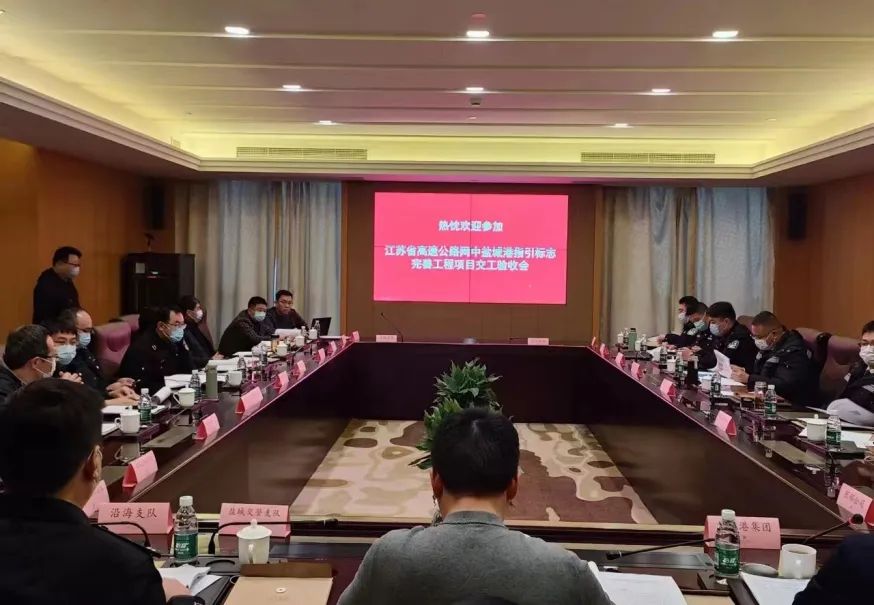 11月30日,鹽城港實業發展集團會同鹽城交通運輸執法總隊、鹽城交警支隊、高速公路管理公司以及設計、監理、施工等相關單位參加江蘇省高速公路網中鹽城港指引標志完善工程項目交工驗收會議。