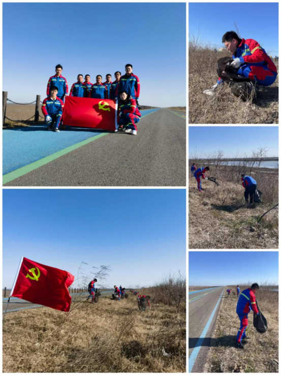 鹽城港農業科技集團的青年小伙們身著工作服,在黨旗的引領下來到海堤公路,開展環境保護志愿活動,助力綠色生態發展,于新時代的春風中賡續傳承雷鋒精神。