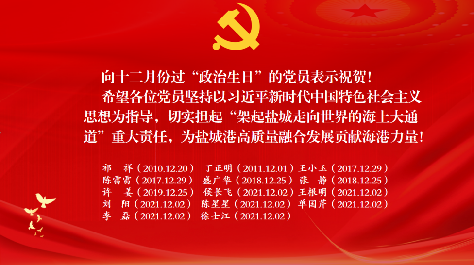 一個承諾,一顆初心,一生信仰,我心向黨,初心永摯。射陽港區(qū)全體黨員干部將永葆共產(chǎn)黨員的政治本色,堅定信仰鑄忠誠,立足崗位創(chuàng)新功。在新的一年里。射陽港區(qū)黨總支也將用活“政治生日”形式,與支部書記上黨課、實境教育相結(jié)合,讓全體干部職工感受到集團(tuán)黨委、港區(qū)黨組織的溫暖關(guān)懷。