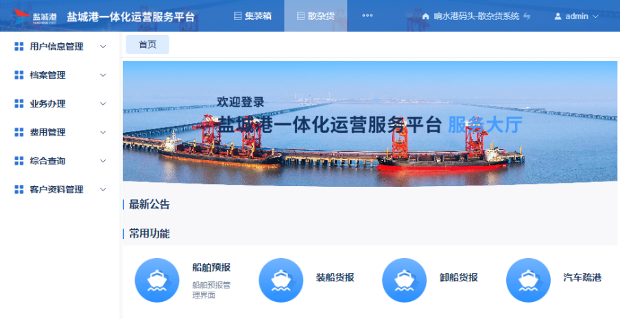 鹽城港網上營業廳響水港散雜貨模塊正式上線運營