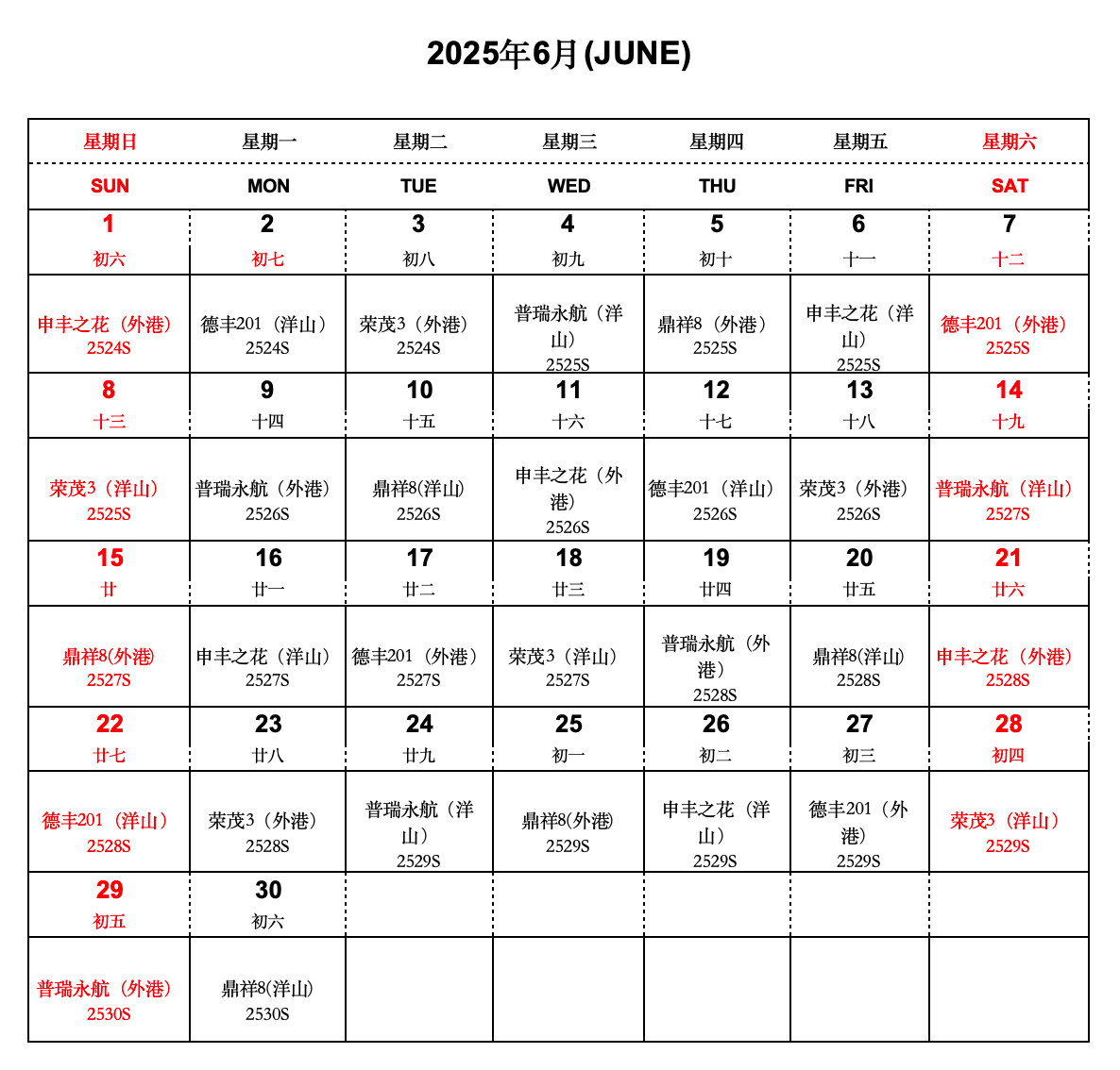 船期速遞丨叮咚!“滬鹽專線”六月船期表已到達