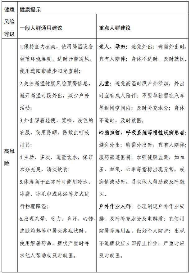 如果出現頭暈、乏力、多汗、心悸、皮膚灼熱等不適癥狀,及時使用解暑藥品,嚴重時立即就醫,警惕熱射病的發生。此外,及時關注預報預警信息,提前做好防護措施,才能最大程度降低高溫健康風險。