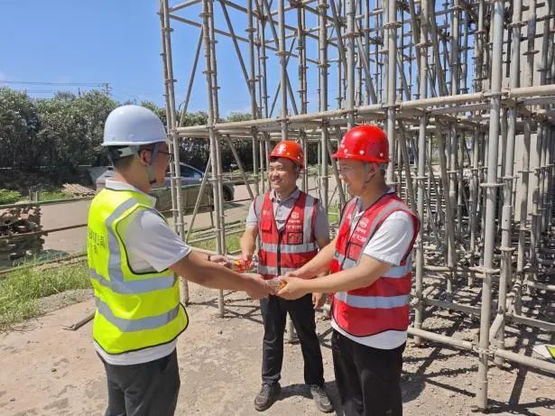 隨著夏季高溫、強降雨、臺風等極端天氣的接踵而至,安全生產面臨嚴峻“烤”驗。為切實保障一線作業人員的身體健康與生命安全,全力沖刺年度安全生產目標,港灣項目管理咨詢公司安環部開展了夏季“三送”(送清涼、送提醒、送教育)專項活動,將關懷與保障送到項目一線。