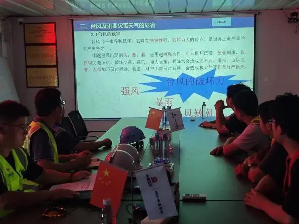 安環部將沉浸式的“安全課堂”送到項目現場。安全講師結合近年來發生的真實案例,生動剖析了臺風、強降雨、雷電等災害天氣的特點及危害,重點講解了:項目現場的洪澇災害薄弱點識別、汛期臨時用電、臨邊防護等關鍵風險管控、應急報警、人員疏散、傷員急救等核心流程。