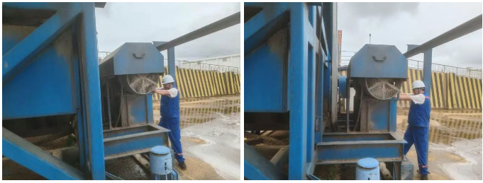 裝船機旁,機修員始終保持專注,手持扭矩扳手逐個校驗連接螺栓,操作精準細致。他們沿爬梯攀上回轉支承部位,逐一檢查每個螺絲的松緊度,確保設備處于最佳運行狀態。機修員摒棄“表面維修”,憑借“耳尖、手準、心細”?的專業能力,嚴格把控抓船機的?“運行關”與?“壽命關”,為糧食卸載量筑牢設備保障,彰顯了硬核擔當。