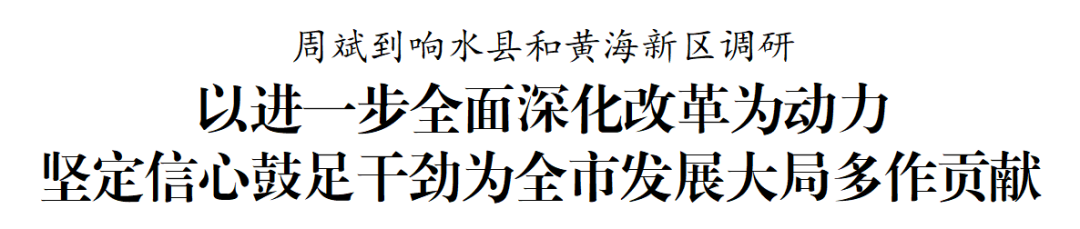 8月12日至13日,市委書(shū)記周斌到響水縣和黃海新區(qū)調(diào)研。他強(qiáng)調(diào),要堅(jiān)持以習(xí)近平新時(shí)代中國(guó)特色社會(huì)主義思想為指導(dǎo),認(rèn)真學(xué)習(xí)貫徹黨的二十屆三中全會(huì)精神,自覺(jué)把改革擺在更加突出位置,完整準(zhǔn)確全面貫徹新發(fā)展理念,加快經(jīng)濟(jì)社會(huì)發(fā)展全面綠色轉(zhuǎn)型,更好統(tǒng)籌發(fā)展和安全,堅(jiān)定信心、鼓足干勁,努力為全市經(jīng)濟(jì)發(fā)展大局多作貢獻(xiàn)。